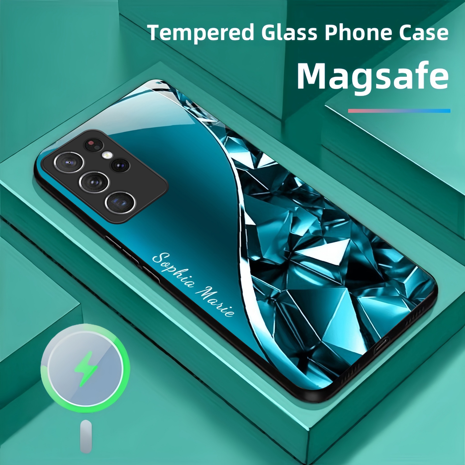 Personalized Gradient Diamond Pattern Magsafe Glass Phone Case