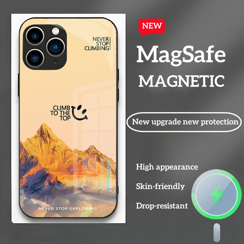 MagSafe Glass Phone Case with Mountain & Smile Pattern