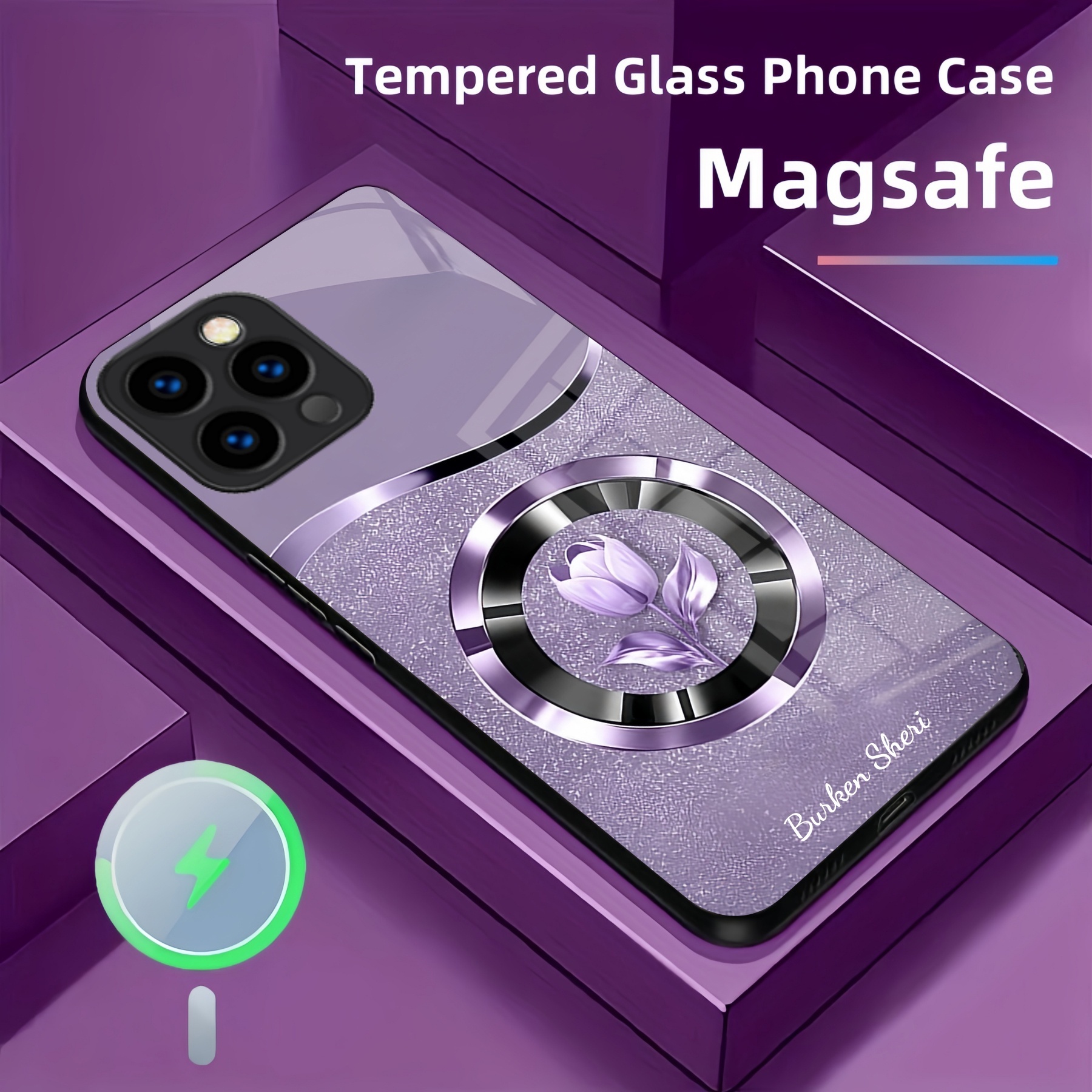 Personalized Glitter Tulip Ring Magsafe Tempered Glass Case