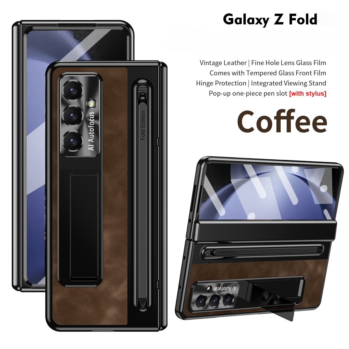 Premium Leather Shell & Film Integrated Pen Slot Phone Case