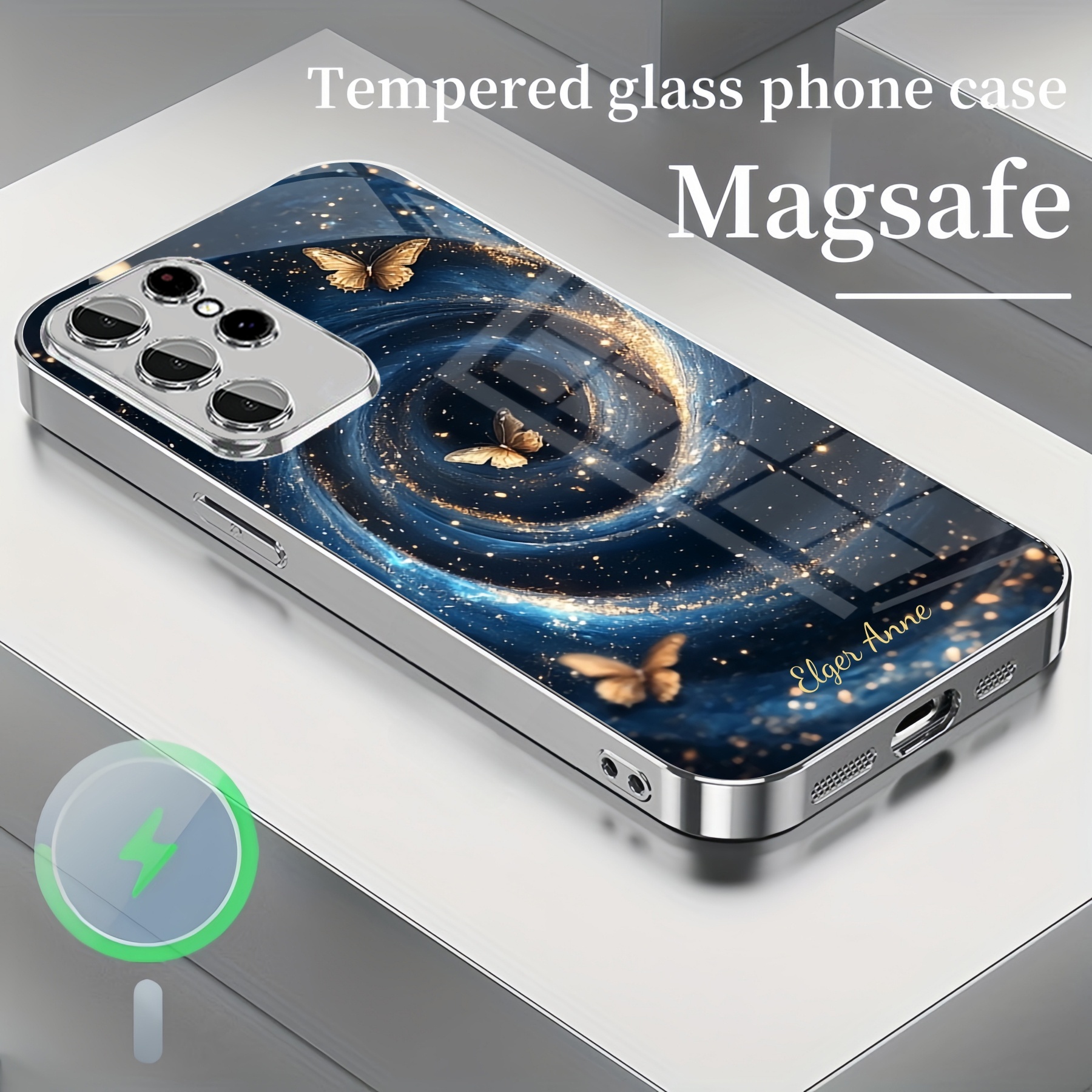 Personalized Galaxy Butterfly Magsafe Tempered Glass Plating Case