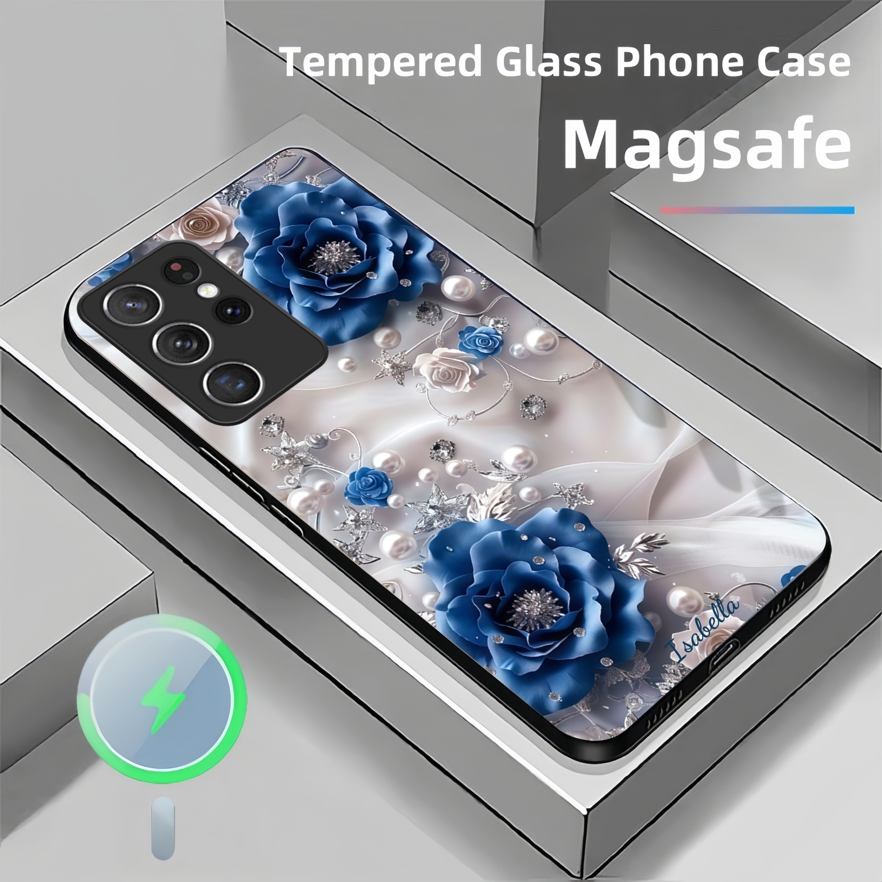 Personalized Aesthetic Blue Rose Magsafe Tempered Glass Case